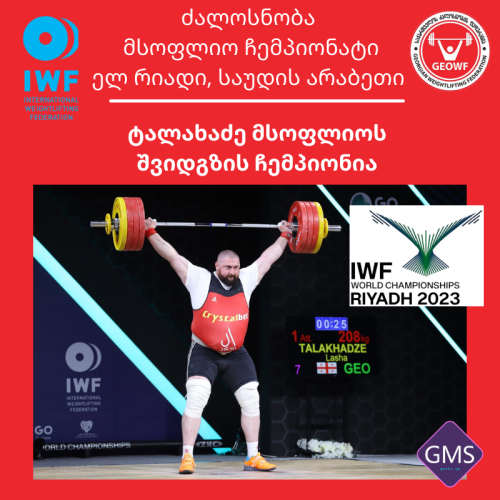ლაშა ტალახაძე ქართული სპორტის ისტორიაში ერთადერთია, ვინც ოლიმპიურ სახეობებში ზედიზედ მე-7 მსოფლიო ჩემპიონატზე გამარჯვება იზეიმა და საუდის არაბეთში გამართული ძალოსანთა მსოფლიო ჩემპიონატი საქართველოს ჰიმნით დახურა.
